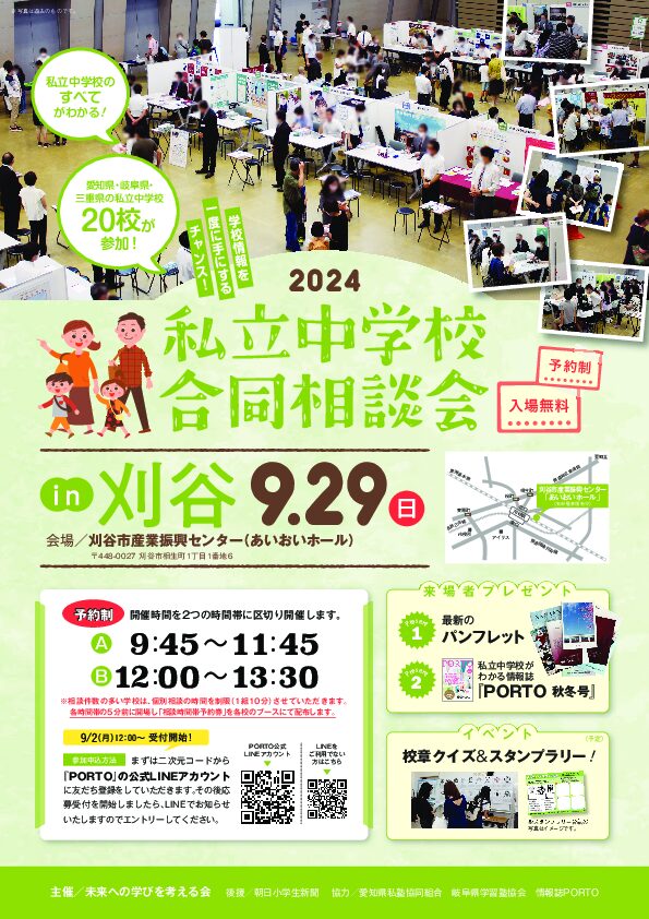 9/29(日)【私立中学校合同相談会 in 刈谷市産業振興センター】受付開始!