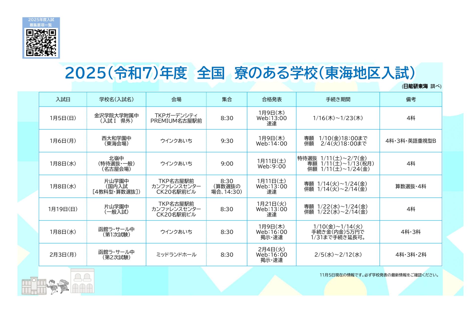 2025年度入試日程 全国寮のある学校(東海地区入試)