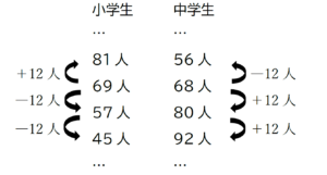 これを満たす小学生と中学生の人数の組み合わせの1つに、