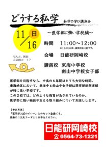 ※同日11:00~12:00で「どうする私学~私学の学び講演会~(講演校:東海中、南山中女子部)」を実施します。